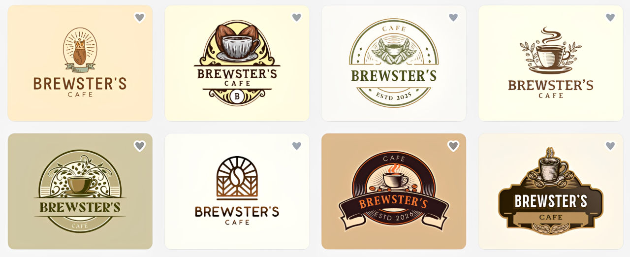 As you can see from the image below, the logo generator will instantly generate many designs for you to browse. You can swap icons, adjust layouts, and try different styles to find what fits your brand.