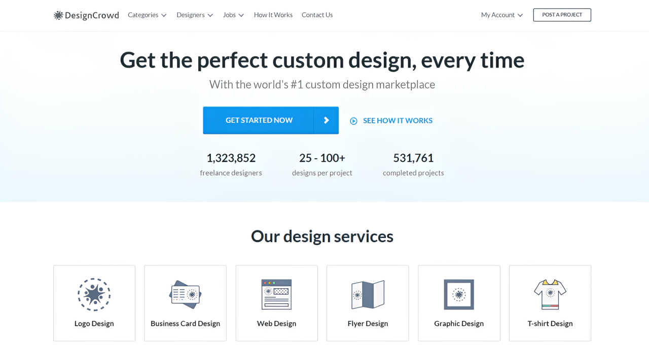 DesignCrowd is an online marketplace providing logo, website, print and graphic design services by providing access to freelance graphic designers and design studios around the world.